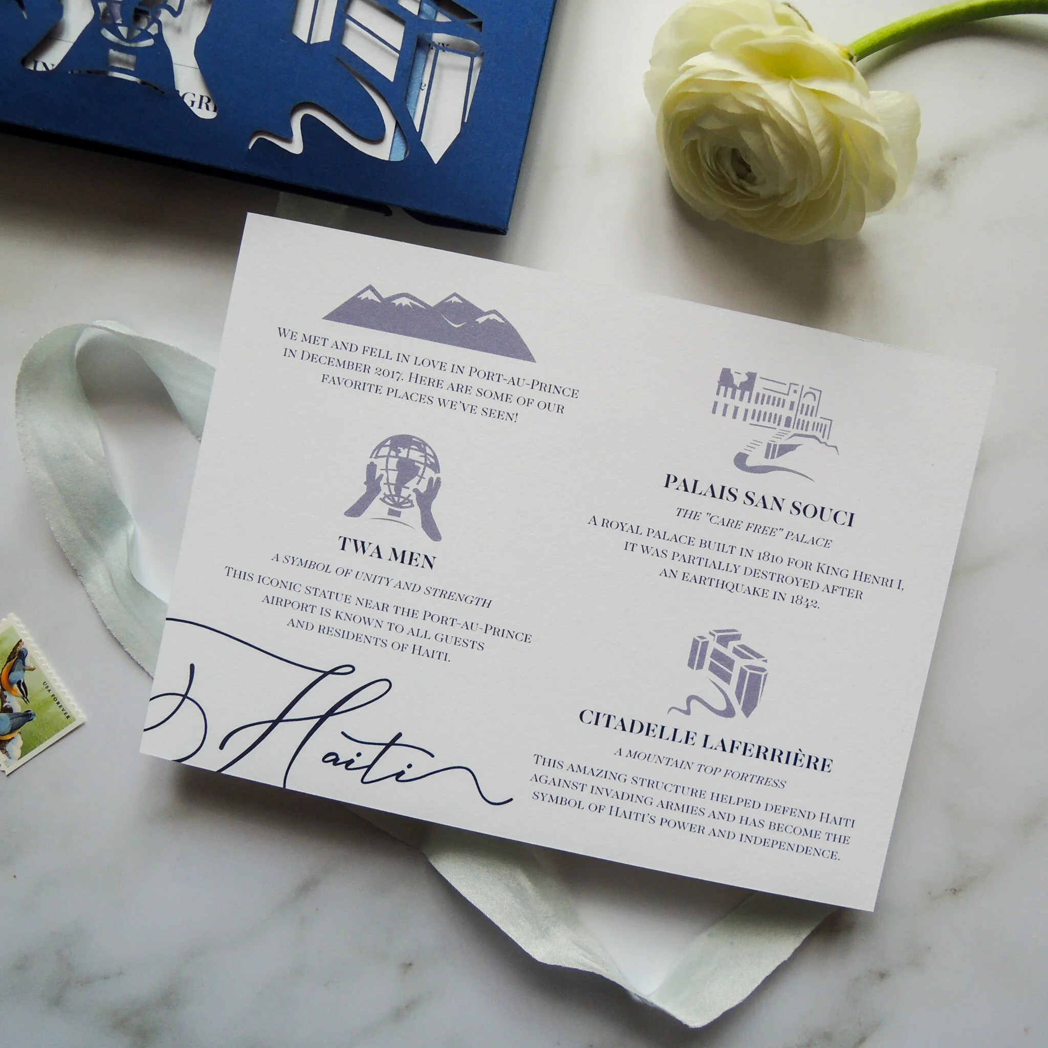 Combining HeritagesTo celebrate where they met, this couple included all things Haitian β even including some text in Haitian Creole and French.